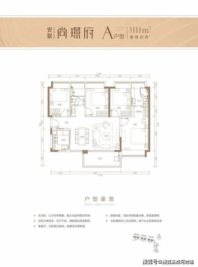 4、安联尚璟府容积率只有3.8,总高31层,且都是2梯4户,户户朝南的设计,景观视野,采光方面是做的挺不错的。
