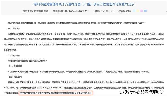 2024年,因深圳“70/90”政策退出,万星林花园还进行过一次调规,在总面积不变的情况下,住宅总户数由955户调整为763户,足足减少了192户。