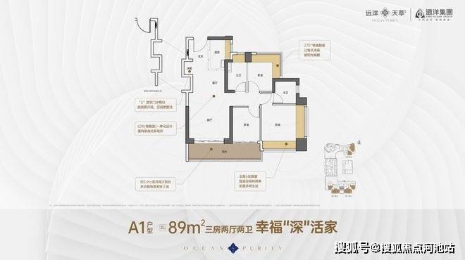 此次项目主推约89㎡3房,入户处是一个创新S墙设计,空间利用率更高的同时也极大程度地保证了整洁度和美观度。