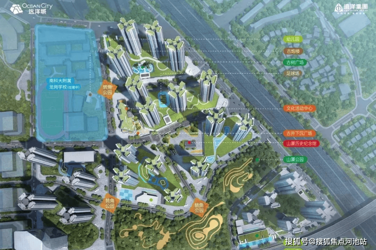 深圳龙岗远洋城,项目规划有住宅、3所幼儿园、写字楼、约4万㎡商业、文脉走廊协同生长,这是远洋城在产品力上的“全周期配套规划”;古树剧场、疗愈花园、四大主题泛会所架空层,重构邻里社交图谱,把“场景化社区营造”的服务力体现得淋漓尽致。