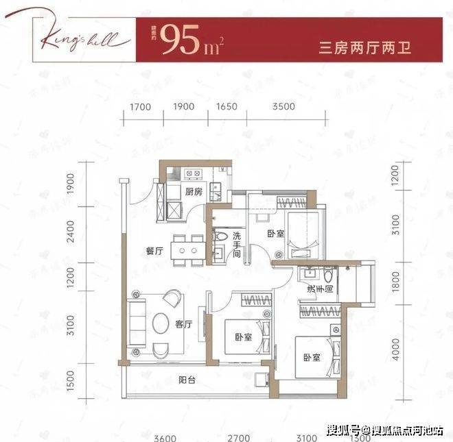 建面约99㎡户型南北通透格局,客厅达到3.6米,以及6.3米的超大阳台,动静分离!这个户型使用率极高