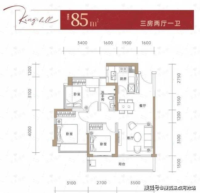 建面约85-95㎡户型设计朝东或者南,并采用传统的竖厅布局,客厅开间3.5-3.6米,亮点为客厅正出的超大阳台设计,3个卧室空间也足够大,刚需上车还是不错的!