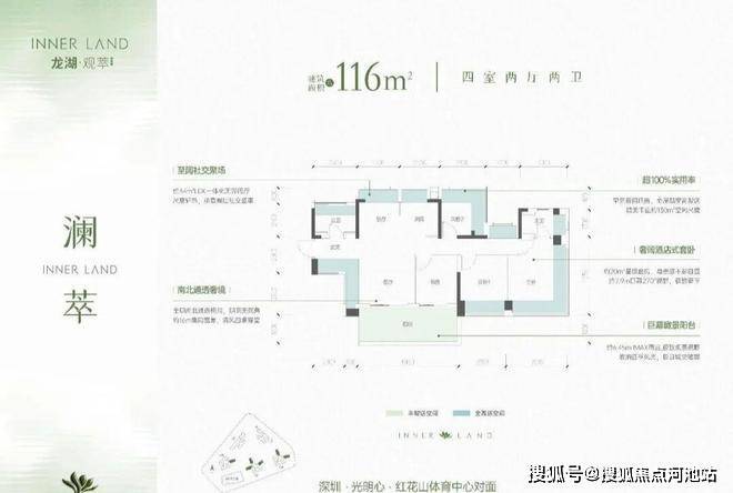 深圳高端改善必看!公明龙湖观萃龙湖品牌匠筑,135㎡4+1 房 3 卫奢阔户型,超 103% 得房率,红花山公园旁生态宜居