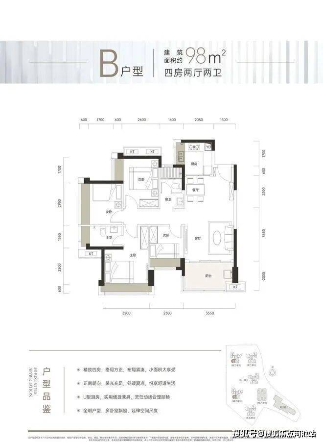 98㎡的4房2厅2卫,折后总价约265万/套,折后单价约2.7万/㎡。