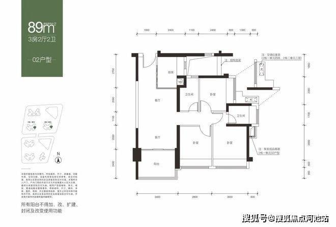 【面积】:约82-89㎡3房2卫