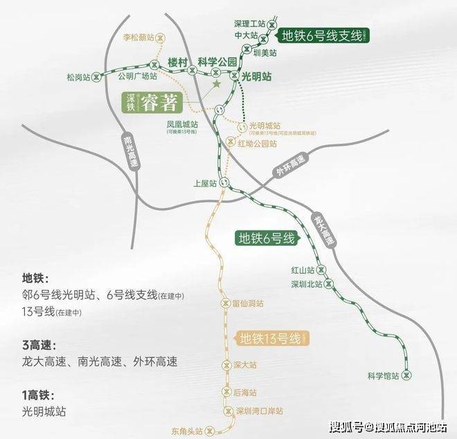 3地铁:邻6号线光明站、6号线支线 (在建中)、13号线 (在建中)