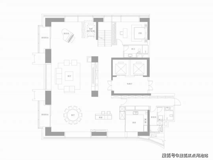 · 纯粹圈层与私密性:项目为纯大平层社区,户型从233㎡起步,云端复式面积约420-1080㎡,仅限量16席。8梯3户、双梯入户的配置保障了居住的私密性与尊崇感,天然筛选出同类圈层人群。