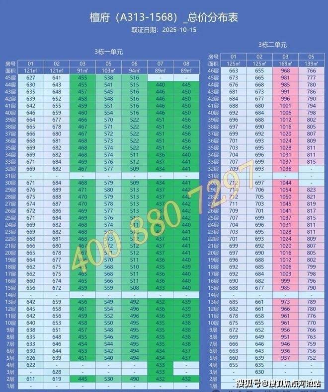 下面是最新万丰海岸城檀府住宅房源的备案价格表