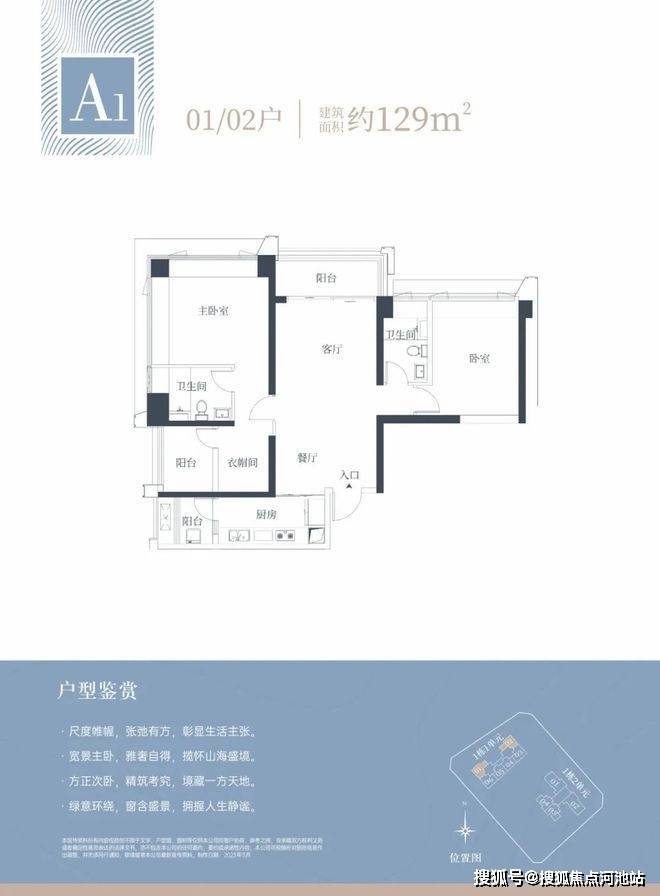 1栋一单元A1、A2户型:面积约为129㎡