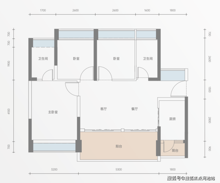 约5.3米开间大横厅,阔绰气派;主卧约3.2米宽飘窗;南向双阳台,兼得美学与实用。