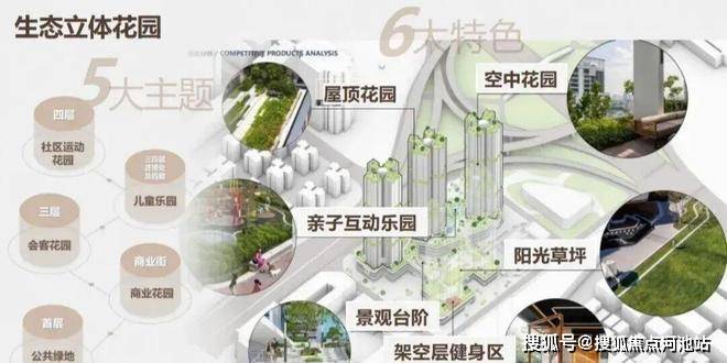 如下图所示,5大主题和6大特色的生态立体花园,这是不亚于商品房的社区配套,生活非常便利,丰富而有趣。