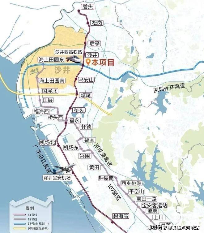 项目周边还有规划中的地铁18号线和20号线,其中18号线一期为空港新城至龙岗平湖段,规划连接新桥与空港新城、光明科学城等核心区域;20号线将延伸至沙井西站,实现与穗莞深城际的无缝换乘。随着深中通道的建设,沙井将成为深圳连接东莞、中山的枢纽,锦和玉鸣府居民可便捷通勤至东莞、广州等大湾区城市,实现"1小时经济圈"的便利生活。