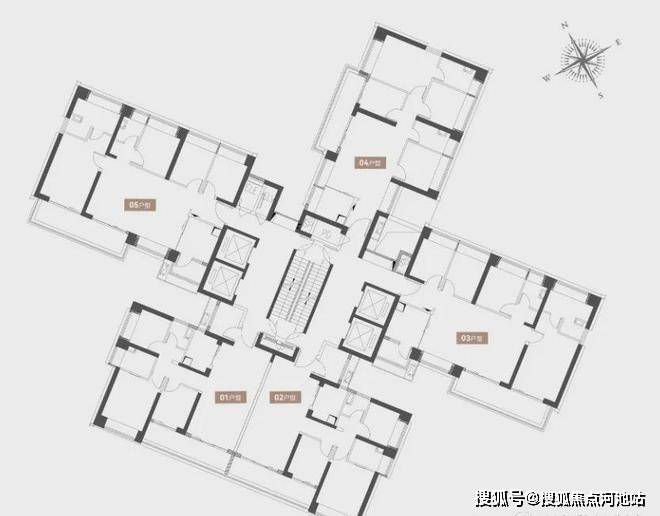 01-02户型116平3房2卫,03、05户型142平4房2卫,04户型120平3房2卫,4梯5户,层高3.1米;