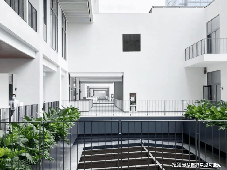 人们穿过喧闹的城市道路,乘扶梯上至屋顶平台,眼前豁然开朗,现出“屋舍俨然”的LOFT小镇。同时这片LOFT体块又是被周边的高大体量所包裹着的,围合出一片被隔离的“都市桃花源”。高低错落,空间变化丰富的小镇,让商业、办公与住宅人流在同一街区活动,创造了一种接待、办公、商业与文化空间融合的聚落式街道生活新模式。