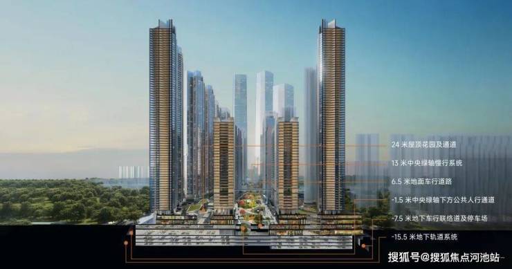 这条轴带上布局了约30万㎡架空层空中花园、约40万㎡商业、约6.6万㎡中央绿轴公园,还规划了4所幼儿园、3所九年一贯制学校满足日常所需,其中两所配套学校已纳入南山外国语学校(集团)。