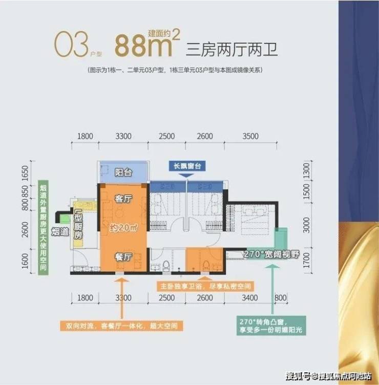每个户型的 设计十分方正,都带有超阔观景阳台, 几乎将每一寸空间的利用都做到了极致。