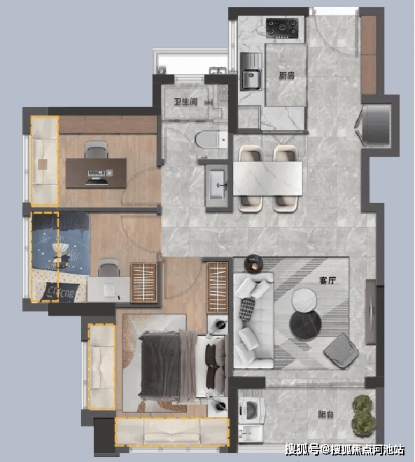 【户型】76㎡3房2厅1卫、90㎡3房2厅2卫