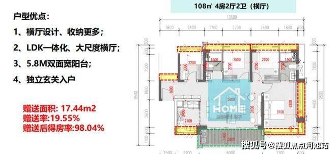 臻悦府住宅户型方面,臻藏级南向湾海视野,LDKB人性化动线设计,格局方正、高实用率,打造独立玄关、双飘窗主卧、步入式衣帽间等个性化空间。