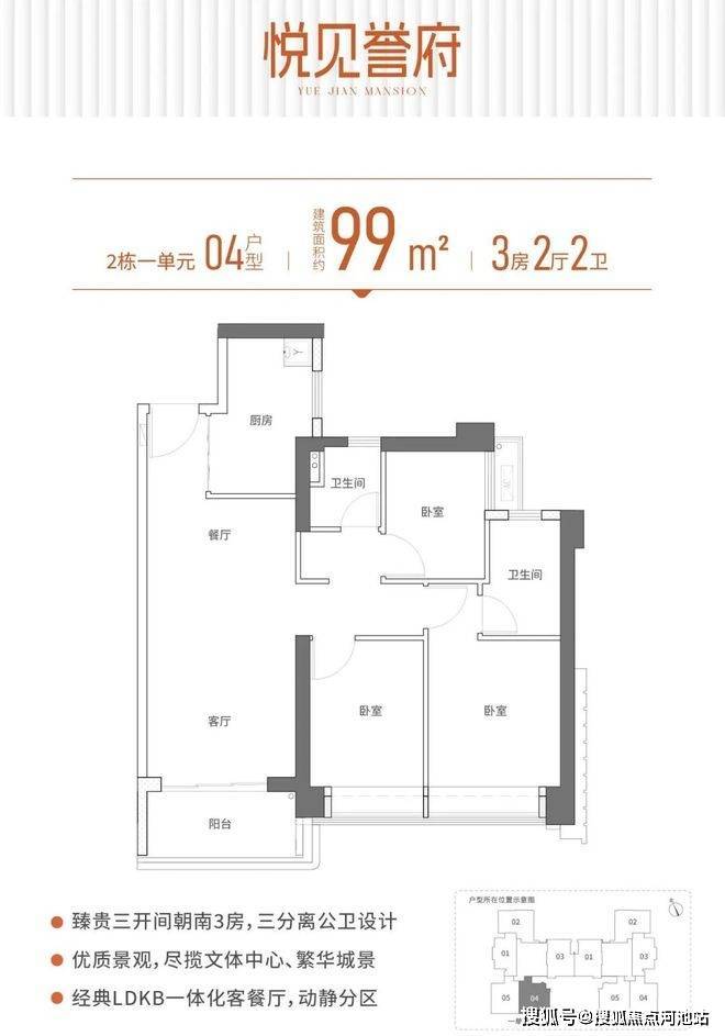 99㎡三房两厅二卫 总价498~525万