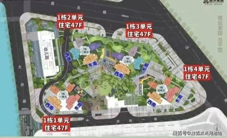 本次推售的是城铭家园,总占地面积约1.92万㎡,总建筑面积约17.06万㎡,溶剂率6.24,绿化率40%,共由4栋47层高的住宅组城。
