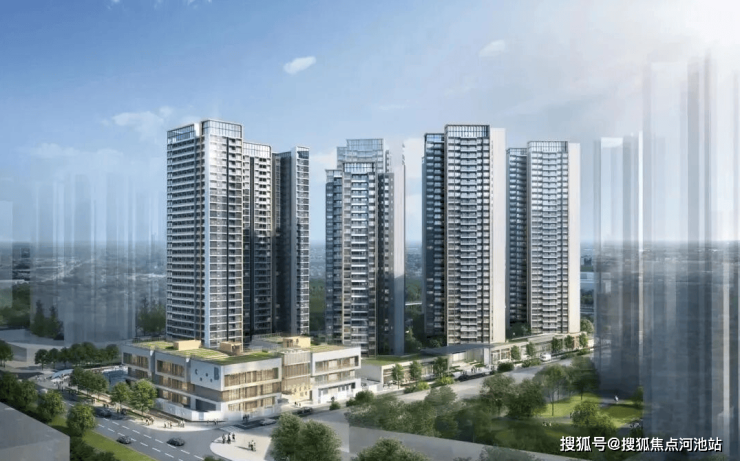 国际现代化外立面:通过局部石材、铝板搭配,设计简洁现代化的外立面,组成高低错落的城市天际线。