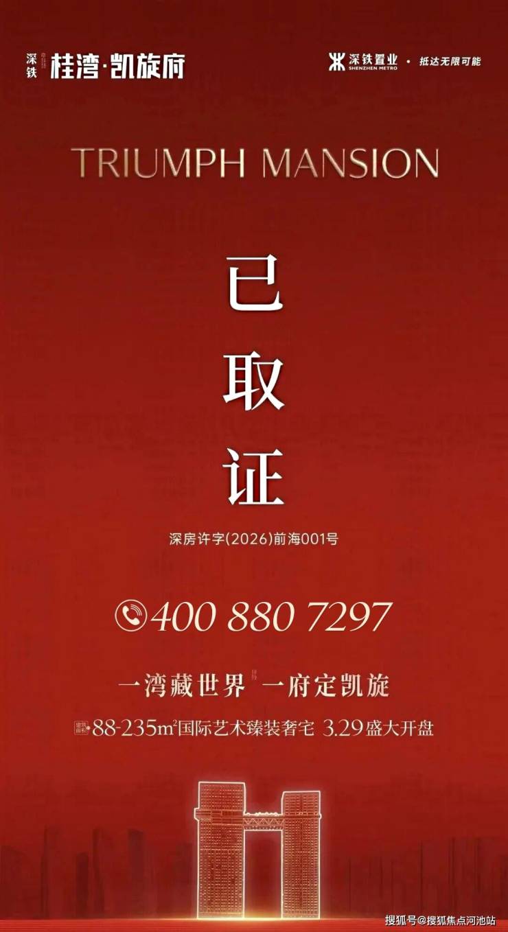 最新消息:属于前海时代TOD综合体的收官住宅地块【桂湾·凯旋府】(备案名:深铁前海时代广场)今日正式拿证,3月29日选房,推88-126㎡中小户型,精装高性价比纯住宅!
