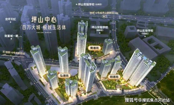 2、财富城2期,买房3件套(地铁+学校+商业)全占了,并且都是坪山区域最顶尖的配套,坪山实验学校+14/16号地铁线/高铁线汇聚+万象城商业/天虹购物中心。