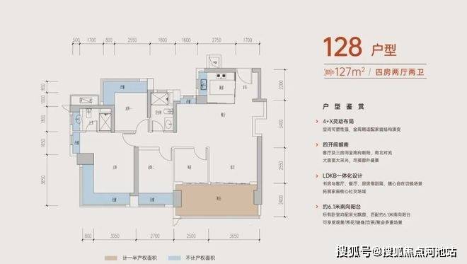 128㎡的4房2厅2卫,折后总价480-517万/套,折后单价3.75-4.02万/㎡。
