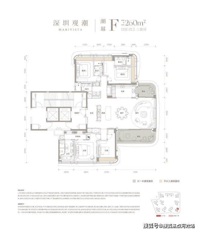 如果总价预算4000万以上,对一线永久海景、户型、朝向要求都比较高,只想买新房,观潮260㎡的户型放全深圳也是首选。