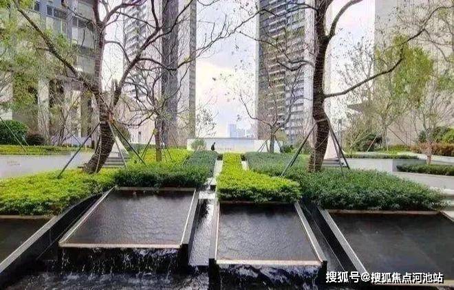 “近看落花至,远闻流水香”。听水入境,迈入第一重归家礼遇——“林下台地”生态迎宾水景,规则、细腻的线式跌水将视线高度抬高,淙淙的流水之音主动打破建筑的单调,赋予景观独特而灵动的美感。