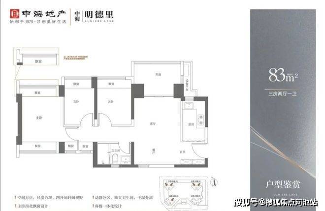 4、户型设计不错,83㎡能做南北通透,总价较低,有利于刚需or刚改上车。