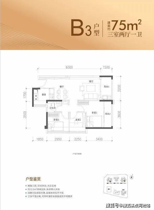 格局:经典竖厅设计,客厅3.5米开间,8.35米进深。