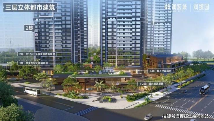 2栋紧连社区公共空间,下楼即享全龄邻里生活。南侧紧邻三层立体都市景观—约2000㎡廊下烟火商街、约1000㎡中央车站、约1000㎡抬高式檐上浮岛花园露台。闲暇时分,或至露台花园观景,或沿流水庭院漫步,四时美景为伴,悦享诗意日常。