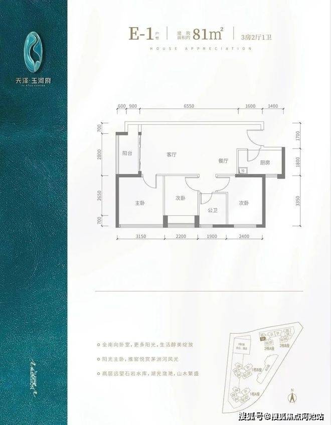 V型塔楼布局,南向阳光户型,约80%高实用率,双阳台,光明罕有绝版户型。建面约80-143㎡2-4房河岸美宅,赠送高标准绿建简装,舒适2T5/3T6,向往的生活在这里触手可及。