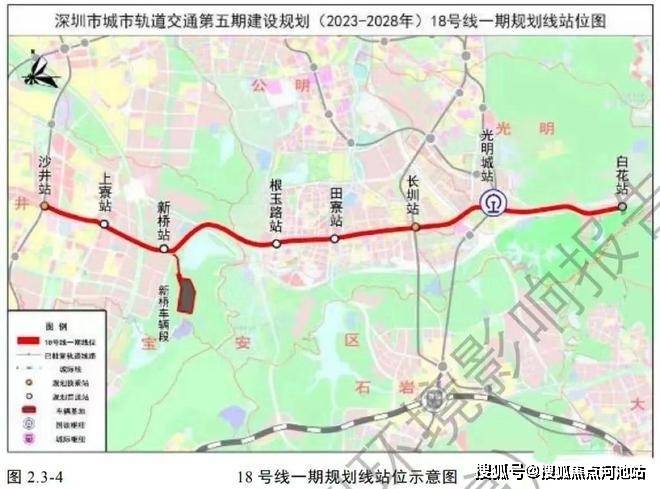 18号地铁线:该线路起于沙井,终至光明区白花站,全线长约18.7公里,设站8座,全部采用地下敷设方式建设,不过该线路因为沿线现状人口岗位密度相对较低,暂未被纳入五期规划。