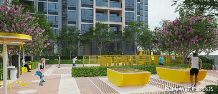 约1500平24小时运动聚落,设置羽毛球、乒乓球、儿童游乐园、成人健身器材等