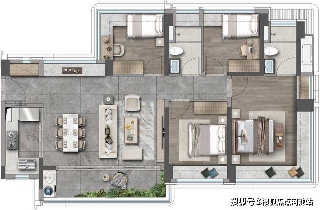 约6.1米阳台三卧室270°飘窗,坐拥巨幕景观
