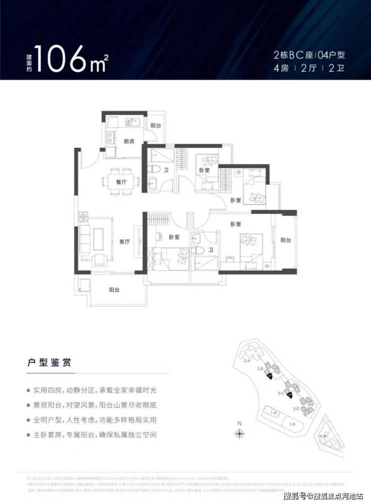 建面约78-129㎡3-4房户型,南北通透,3房3.5~3.7m,4房3.8~4.2m,罕见阔绰开间,客厅、厨房、卧室三阳台多飘窗,超高使用率。