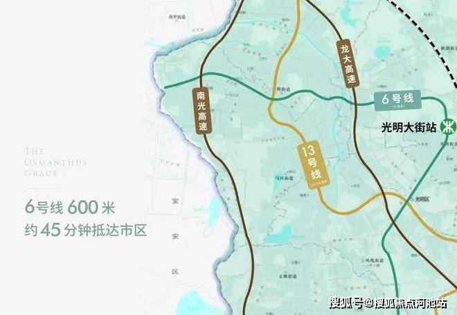 “3横2纵”约45min市区CBD便捷通勤;6号线光明大街站约600m,直抵城际核心圈。