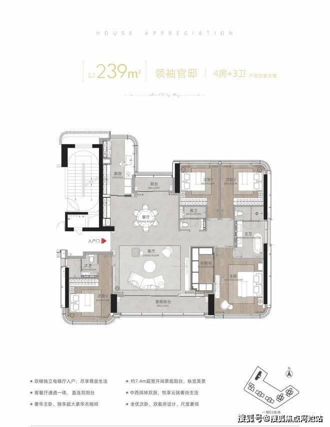 建面约239㎡领袖官邸4房+3卫(T12-01/02)