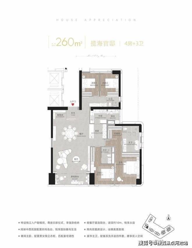 建面约260㎡揽海官邸 4房+3卫(T11-03低区)