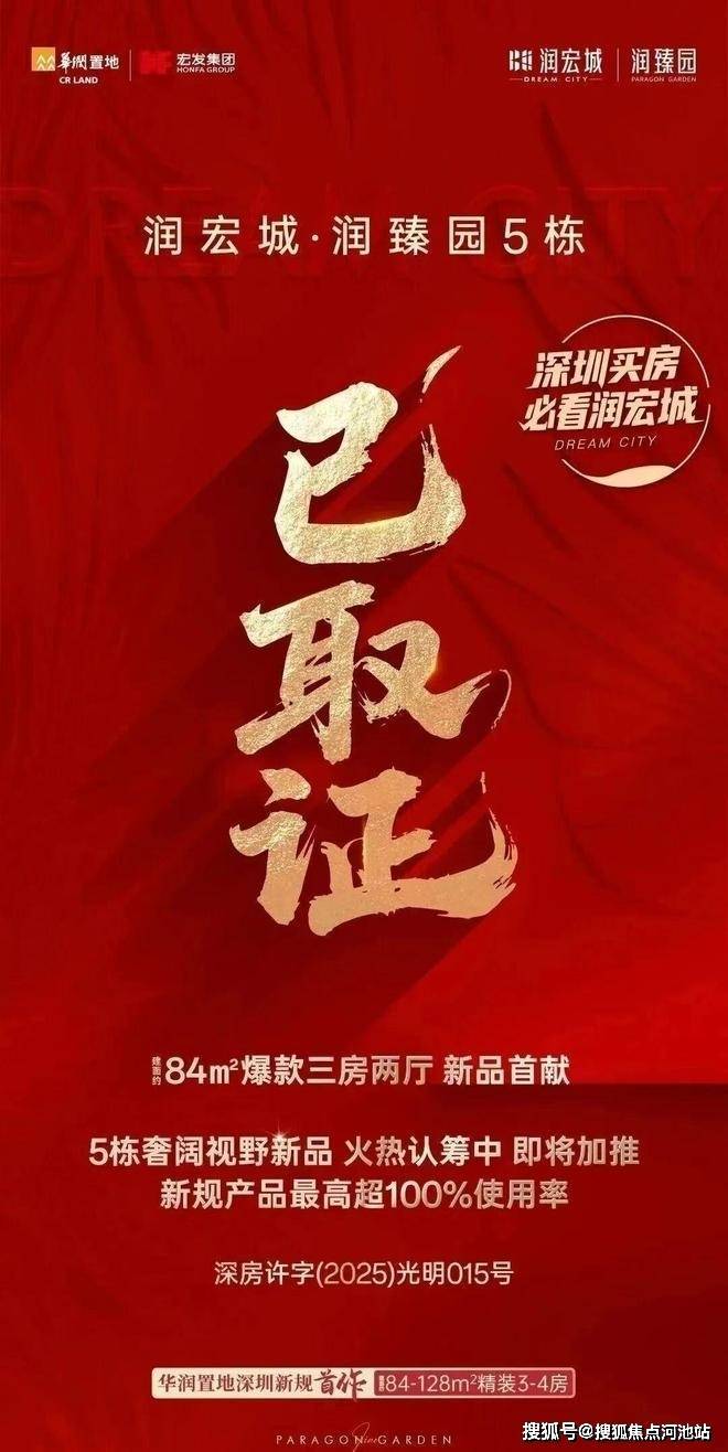 光明区润宏城·润臻园当前主推84-128㎡精装住宅,折后总价240万起,均价约3.4万/㎡;近期加推5栋房源,去化率达90%;项目优势为地铁配套与价格竞争力,但容积率较高且交房周期较长。
