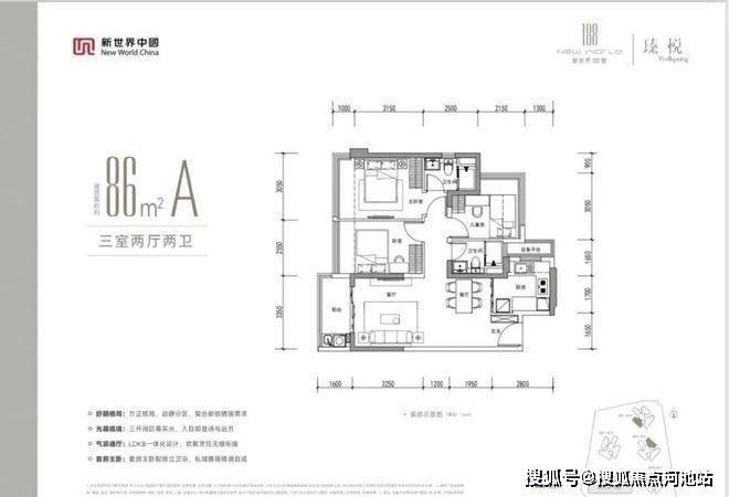 深圳龙岗新世界 188 号臻悦 76㎡竖厅三房,3.3 米开间 + 270° 飘窗,精装交付带品牌空调