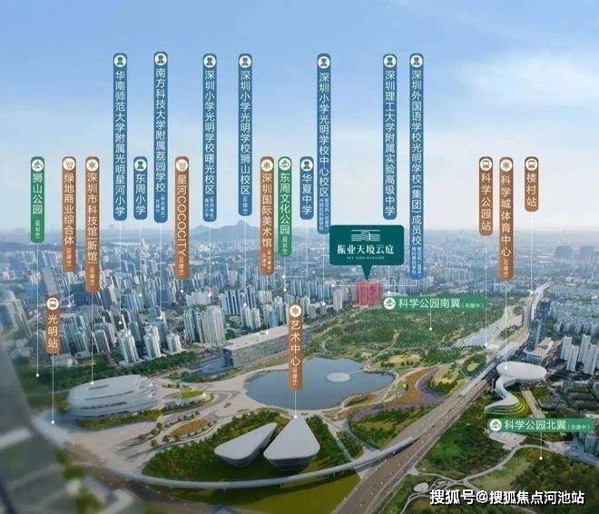 光明科学城占地约208万㎡,配置有深圳国际美术馆、深圳科技馆新馆、科学城体育中心、光明文化艺术中心等市级文体配套。