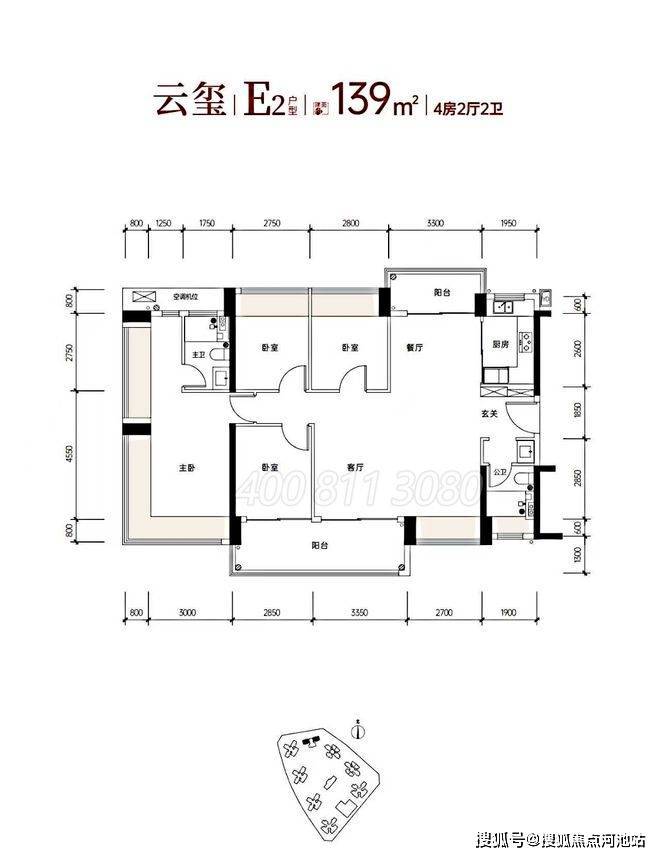 建面139平米4房2厅2卫户型图
