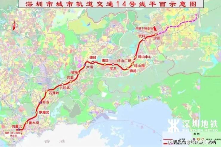 14号地铁线,该线路是从坪山沙田开往福田岗夏北的快速线,设计时速120公里,4站到大运,9站到布吉,10站到罗湖,12站到福田岗厦北,用时43分钟。
