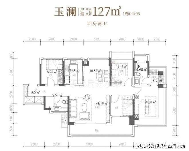 104-107㎡的4房2厅2卫,折后总价490-530万/套,单价4.62-5万。
