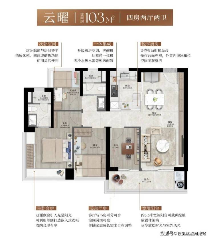 【建筑面积103㎡4房2卫】