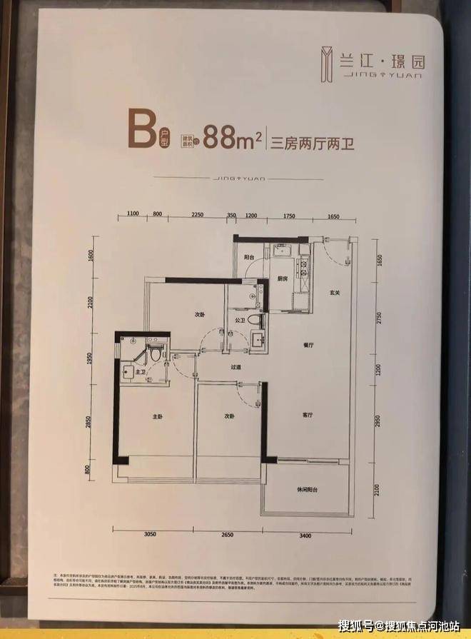 88m²的3房2厅2卫,折后总价185-202万,单价2.1-2.29万/m²。