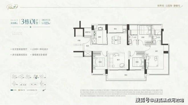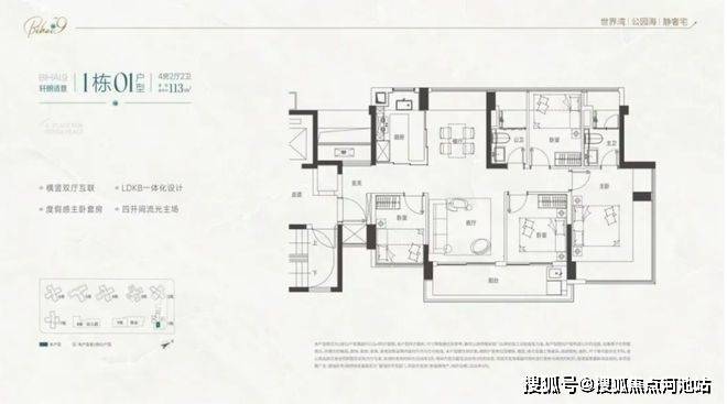 105-122㎡四房:主流改善,2梯4户,西南看海